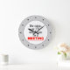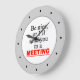 Be Nice or I'll send you to a meeting, snappy, funny saying for assistants and co-workers on a wall clock with a white face and black dots to mark the hours on gray background. Click Customize It to add your name or message, change elements, add your logo, even save your design for later.