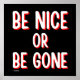 BE NICE OR BE GONE funny quote Poster