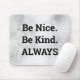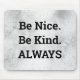 "Be Nice" and "Be Kind" text on gray abstract background.
