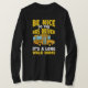 I love this shirt. I had written to the artist asking her if this picture was available on a shirt, and she wrote me back telling me where I could find the shirt. These shirts can be custom made to have a different saying. I loved this saying and went with it. The artist wrote me back later to tell me that she had seen my order go through. How's that for service? Pretty special. It's just as displayed. Perfect!