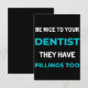 Be Nice To Your Dentist They Have Fillings Too design. This is a short funny quote which is great as an appreciation gift idea for Dentists. Also suitable as Dentist Gifts.