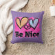 Be Nice Watercolor Hearts Throw Pillow