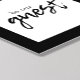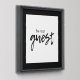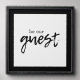 This wall art print features the text "be our guest" in black, on a white background with black edges. This minimalist design showcases a combination of retro typewriter and trendy script text. Welcome family and friends to your guest room or add the perfect touch to your B & B rental with this cute wall print.