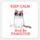Add a touch of positivity to your life with the Keep Calm and Be Pawsitive Cool Cat Wearing Glasses Sticker. This accessory boasts a lighthearted approach to positivity, showcasing the popular "keep calm and stay pawsitive" quote alongside a funny cat image. The minimal and sleek design make it a versatile addition to your belongings, like your phone case or notebook. With its positive smile quotes, this sticker is sure to brighten up your day!