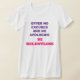 The material is a great quality that is hard to find with most tee shirts. Fabric was not see-through or thin at all, but was also very soft and comfortable. The shirt description states that it runs a little small, so I sized up one size for a perfect fit! I would definitely buy this type of tee shirt again because I love the fit and high quality fabric that I cannot find anywhere else. The printing was perfect and just as pictured. Loved the cute quote and really enjoy the tee in both the quality and design. I love quirky typography designs and funny quotes and I am extremely pleased with the overall quality and value I get at Zazzle!