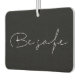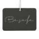 Get a personalized air freshener with a custom message for your loved ones. Modern, with the words "Be safe" written with a minimalist typography. Fully customizable colors.
