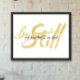Scripture Design taken from Psalm 46:10, "Be Still and Know that I am God." Beautiful gold style modern calligraphy design with words, "Be Still." In black calligraphy on top are words, "and know that I am God" with shadow.