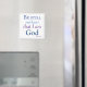 A lovely reminder of your faith, this refrigerator magnet features "Be still and know that I am God" Psalm 46:10. This scripture is written in lovely blue and purple text. Makes a great fundraising item for a Church project, order yours today!