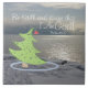 Christmas ceramic tile depicts a Christmas tree on a snow covered beach with the sun glistening on the water and features Bible Verse Psalm 46:10, Be still and know that I am God!