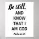 Psalm 46:10 Be Still And Know I Am God Poster. Bible scripture verse for Christians. Makes a great gift! Black decorative script typography. Instant digital downloads coming soon.