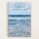 Uplifting daily planner featuring the KJV Bible verse from Psalm 46:10 "Be still and know that I am God" for a mini meditation on the go each time you glance at your planner while organizing your daily/monthly schedule. "Be Still and know that I am God" inspirational quote in an elegant modern script font at the top of planner and personalized with your name and year at the bottom of planner cover. Breathtaking blue and white photography background of rolling blue waves with white caps along a beach shoreline.