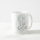This coffee mug features the phrase "Be still and know that I am God" in the style of vintage hand lettered signs.