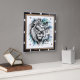 This striking square wall clock features a majestic lion with a flowing mane in shades of black, white, and teal, emerging from a watercolor background. The powerful scripture "Be Still and Know That I Am God" from Psalm 46:10 is elegantly overlaid, creating an inspiring and serene piece of spiritual art.
