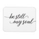This elegant handwritten-style script with the word "Be Still My Soul" on magnet cards to send to family and friends for love and encouragement. A Christian bible reference and passage to bring comfort.