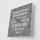 This is a cool gray color square-shaped inspiring wall clock with a beautiful encouraging Bible verse print from Joshua 1:9 that says 'Be strong and courageous. Do not be frightened, and do not be dismayed, FOR THE LORD, YOUR GOD IS WITH YOU wherever you go.' It will make a beautiful inspirational faith gift idea.