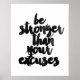 This is a beautiful motivational inspirational quote art prints featuring "Be Stronger than Your Excuses"