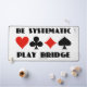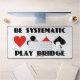 Make others do a double-take with a dose of bridge humor with this bridge attitude desk mat featuring the four card suits along with the following sound bridge advice: "Be Systematic Play Bridge". Memorable bridge humor saying desk mat for any avid bridge player or bridge teacher!