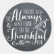 Rustic Thanksgiving sticker featuring whimsical script on a chalkboard background. This item is available in other background textures and colors.