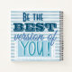 "Be the best version of you!" Motivational quote in fun typography in shades of blue.