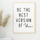 This design is composed of the phrase "Be The Best Version of You" which is a typography poster wall art that features a clean and modern design that is perfect for brightening up and adding some personality to any space. This lovely print can be personalized further by adding your own custom text, as well as changing the colors. This design has a modern feel and would look great in a modern apartment or loft space.