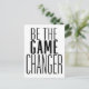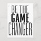 Motivational words to send with this typographical design in sans style and the quote Be The Game Changer in large black letters.