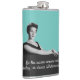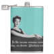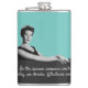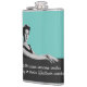 Funny, snarky, sarcastic - all the best feels! Vintage look flask features black and white reclining woman photo cutout with white on black text block that reads " Be the reason someone smiles today...or drinks. Whatever works." Aqua background