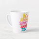 Brighten someone’s day with this cheerful and uplifting latte mug featuring the inspiring phrase “Be the Reason Someone Smiles Today” in vibrant, colorful lettering. Whether you're gifting it to a friend or using it as a daily reminder to lead with kindness, this design delivers a message of encouragement, joy, and good vibes.