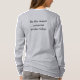 I love this shirt. I had written to the artist asking her if this picture was available on a shirt, and she wrote me back telling me where I could find the shirt. These shirts can be custom made to have a different saying. I loved this saying and went with it. The artist wrote me back later to tell me that she had seen my order go through. How's that for service? Pretty special. It's just as displayed. Perfect!