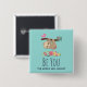 A button with an amusing saying: Be You the world will adjust. Designed with an illustration of a cute brown sloth hanging upside down. This funny little guy is holding onto a branch which has a little pink bird on one side of the branch and a doodle-style rose bouquet on the other side. Below them is an arrangement of colorful hand-drawn flowers. This adorable sloth also has pink rosy cheeks and 3 cute little hearts on his butt.