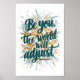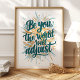 Embrace your individuality with this empowering "Be You, The World Will Adjust" art print. Featuring a bold, hand-lettered quote in teal against a backdrop of shimmering gold and blue watercolor textures, this piece is a vibrant reminder to stay true to yourself. Perfect for adding a touch of inspiration and confidence to your home or office decor.