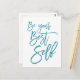Give someone a boost and send them a postcard with a message of encouragement! This has motivational words Be Your Best Self in blue faux glitter against a white background which can be changed to a different color if you so wish.