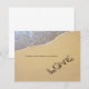 Beach and Love Quote Wedding Invitation--beautiful beach scene with ocean and sand and the word LOVE in the sand. Quote reads, A Moment that changed us Forever. ---Personalize this unique wedding invitation with your wedding details on the back.