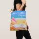 Stay in a beachy state of mind all the time with this personalized tote bag, featuring a conch, starfish and a good book. Personalize with any name. Great as a beach bag.