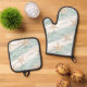 Beach Aqua Mint Starfish Stripes Oven Mitt & Pot Holder Set
