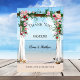 Wedding Thank You note card featuring a floral arbor with roses on the beach and your own wedding photo on the inside.