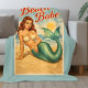 Beach Babe Pin-Up Mermaid Art | Retro Coastal Teal Fleece Blanket