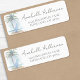 Your return address appears on the right in soft tan and blue tones, using a mix of elegant handwritten script and classic serif fonts for a clean, stylish look. All text, colors, and fonts can be customized to match your theme, making it a charming finishing touch for your beach-inspired stationery.
