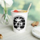 Cool black palm trees on a stylish custom bachelor party or wedding paper cup. Customize these tropical cups for your destination wedding. They are perfect for the whole bridal party at an island getaway rehearsal dinner or for a maid of honor or best man.