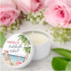 This tropical beach-themed party favor candle is perfect for a bachelorette getaway with the bride and her besties. Featuring a fun watercolor design in shades of pink and teal, it captures the relaxed and playful vibe of a beach escape. A pink and white beach chair, umbrella, and flamingo floaty add a cute and whimsical touch, with swaying palm trees and seashells bringing in those dreamy coastal details.