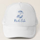 Bachelorette weekend bride tribe hat, featuring hand drawn beach chairs and umbrella. Easy to change for any party.