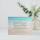 Beach background wedding ceremony invitation postcard for those marrying by the sea. Tropical blue water and beach sand is the background for three templates for your text. Wording is for a simple ceremony with a place for reception info and / or RSVP as you please. Reverse also has a water image background for addressing.