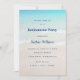 Beach background retirement party invitation. Printed navy blue text is simple and perfect for a man who is retiring, but works for anyone. Also change the text for another type of celebration. A light scene of an ocean and beach sand is the background for text on the front. Blue ocean water is the image on the back. You may choose to upgrade the paper, change the size, and choose an edge shape.