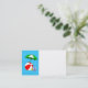 A custom business card template with fun beach or swimming pool themed art of a red beach ball, green sun umbrella, vacation sandals and suntan oil on a watery blue background with curly waves. Click Customize It to choose your fonts, add custom text, even save your design for later.