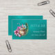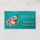 Coconut with straw, tropical leaves and hibiscus flowers composition on a water like blue teal background making a retro bold colorful beach bar business card. ---- Fill in your details on front and back side!