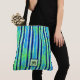 A classic roomy summer tote bag in beach glass colors printed in a batik style stripes pattern. Blues, greens and navy. Edit your monogram and done.