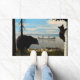 Two Native Americans paddle their canoe across a lake, just offshore, on a foggy morning. A black bear sow is none too pleased and has sent her cub up a nearby birch tree for safety. Add your own text. The American black bear, Ursus americanus, is the smallest of the three bears species found in North America, and are found only in North America. Although they all live in North America, black bears are not closely related to brown bears and polar bears; genetic studies reveal that they split from a common ancestor 5.05 million years ago. Black bears can be distinguished from brown bears by their smaller size, their more concave profiles, their shorter claws and the lack of a shoulder hump. Black bear fur is usually a uniform color except for a brown muzzle and light “crescent moon” markings that sometimes appear on their chests. Despite their name, black bears show a great deal of color variation. Individual coat colors can range from white, blond, cinnamon, or light brown to dark chocolate brown or to jet black, with many intermediate variations existing. Bluish tinged black bears occur along a portion of coastal Alaska and British Columbia. White to cream colored black bears occur in coastal islands and the adjacent mainland of south-western British Columbia. Albino specimens have also been recorded. Black coats tend to predominate in moist areas such as New England, New York, Tennessee, Michigan and western Washington. 70% of all black bears are black, though only 50% of black bears in the Rocky Mountains are black. Black bears with white-bluish fur are known as Kermode (glacier) bears and these unique color phases are only found in coastal British Columbia, Canada. Black bears are omnivorous: plants, fruits, nuts, insects, honey, salmon, small mammals and carrion. In northern regions, they eat spawning salmon. Black bears will also occasionally kill young deer or moose calves. The American black bear is distributed throughout North America, from Canada to Mexico and in at least 40 states in the U.S. They historically occupied nearly all of the forested regions of North America, but in the U.S. they are now restricted to the forested areas less densely occupied by humans. In Canada, black bears still inhabit most of their historic range except for the intensively farmed areas of the central plains. In Mexico, black bears were thought to have inhabited the mountainous regions of the northern states but are now limited to a few remnant populations. Black bears are extremely adaptable and show a great variation in habitat types, though they are primarily found in forested areas with thick ground vegetation and an abundance of fruits, nuts, and vegetation. In the northern areas, they can be found in the tundra, and they will sometimes forage in fields or meadows. Black bears tend to be territorial and non-gregarious in nature. They mark their territories by rubbing their bodies against trees and clawing at the bark. They are strong swimmers, doing so for pleasure and to feed. Black bears climb regularly to feed, escape enemies or to hibernate. Their arboreal abilities tend to decline with age. Adult black bears are mostly nocturnal, but juveniles are often active in daytime. The bears usually forage alone, but will tolerate each other and forage in groups if there is an abundance of food in one area. Most black bears hibernate depending on local weather conditions and availability of food during the winter months. In regions where there is a consistent food supply and warmer weather throughout the winter, bears may not hibernate at all or do so for a very brief time. Females give birth and usually remain denned throughout the winter, but males and females without young may leave their dens from time to time during winter months. Black bears were once not considered true or "deep" hibernators, but because of discoveries about the metabolic changes that allow black bears to remain dormant for months without eating, drinking, urinating, or defecating, most biologists have redefined mammalian hibernation as "specialized, seasonal reduction in metabolism concurrent with scarce food and cold weather". Black bears are now considered highly efficient hibernators. Black bears enter their dens in October and November. Prior to that time, they can put on up to 30 pounds of body fat to get them through the seven months during which they fast. Hibernation in black bears typically lasts 3–5 months. During this time, their heart rate drops from 40–50 beats per minute to 8 beats per minute. They spend their time in hollowed-out dens in tree cavities, under logs or rocks, in banks, caves, or culverts, and in shallow depressions. Females, however, have been shown to be pickier in their choice of dens, in comparison to males. A special hormone, leptin is released into their systems, to suppress appetite. Because they do not urinate or defecate during dormancy, the nitrogen waste from the bear's body is biochemically recycled back into their proteins. This also serves the purpose of preventing muscle loss, as the process uses the waste products to build muscle during the long periods of inactivity. In comparison to true hibernators, their body temperature does not drop significantly (staying around 35 degrees Celsius) and they remain somewhat alert and active. If the winter is mild enough, they may wake up and forage for food. Females also give birth in February and nurture their cubs until the snow melts. During winter, black bears consume 25–40% of their body weight. The footpads peel off while they sleep, making room for new tissue. After emerging from their winter dens in spring, they wander their territories for two weeks so that their metabolism accustoms itself to the activity. They will seek carrion from winter-killed animals and new shoots of many plant species, especially wetland plants.In mountainous areas, they seek southerly slopes at lower elevations for forage and move to northerly a
