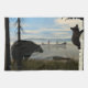 Two Native Americans paddle their canoe across a lake, just offshore, on a foggy morning. A black bear sow is none too pleased and has sent her cub up a nearby birch tree for safety. The American black bear, Ursus americanus, is the smallest of the three bears species found in North America, and are found only in North America. Although they all live in North America, black bears are not closely related to brown bears and polar bears; genetic studies reveal that they split from a common ancestor 5.05 million years ago. Black bears can be distinguished from brown bears by their smaller size, their more concave profiles, their shorter claws and the lack of a shoulder hump. Black bear fur is usually a uniform color except for a brown muzzle and light “crescent moon” markings that sometimes appear on their chests. Despite their name, black bears show a great deal of color variation. Individual coat colors can range from white, blond, cinnamon, or light brown to dark chocolate brown or to jet black, with many intermediate variations existing. Bluish tinged black bears occur along a portion of coastal Alaska and British Columbia. White to cream colored black bears occur in coastal islands and the adjacent mainland of south-western British Columbia. Albino specimens have also been recorded. Black coats tend to predominate in moist areas such as New England, New York, Tennessee, Michigan and western Washington. 70% of all black bears are black, though only 50% of black bears in the Rocky Mountains are black. Black bears with white-bluish fur are known as Kermode (glacier) bears and these unique color phases are only found in coastal British Columbia, Canada. Black bears are omnivorous: plants, fruits, nuts, insects, honey, salmon, small mammals and carrion. In northern regions, they eat spawning salmon. Black bears will also occasionally kill young deer or moose calves. The American black bear is distributed throughout North America, from Canada to Mexico and in at least 40 states in the U.S. They historically occupied nearly all of the forested regions of North America, but in the U.S. they are now restricted to the forested areas less densely occupied by humans. In Canada, black bears still inhabit most of their historic range except for the intensively farmed areas of the central plains. In Mexico, black bears were thought to have inhabited the mountainous regions of the northern states but are now limited to a few remnant populations. Black bears are extremely adaptable and show a great variation in habitat types, though they are primarily found in forested areas with thick ground vegetation and an abundance of fruits, nuts, and vegetation. In the northern areas, they can be found in the tundra, and they will sometimes forage in fields or meadows. Black bears tend to be territorial and non-gregarious in nature. They mark their territories by rubbing their bodies against trees and clawing at the bark. They are strong swimmers, doing so for pleasure and to feed. Black bears climb regularly to feed, escape enemies or to hibernate. Their arboreal abilities tend to decline with age. Adult black bears are mostly nocturnal, but juveniles are often active in daytime. The bears usually forage alone, but will tolerate each other and forage in groups if there is an abundance of food in one area. Most black bears hibernate depending on local weather conditions and availability of food during the winter months. In regions where there is a consistent food supply and warmer weather throughout the winter, bears may not hibernate at all or do so for a very brief time. Females give birth and usually remain denned throughout the winter, but males and females without young may leave their dens from time to time during winter months. Black bears were once not considered true or "deep" hibernators, but because of discoveries about the metabolic changes that allow black bears to remain dormant for months without eating, drinking, urinating, or defecating, most biologists have redefined mammalian hibernation as "specialized, seasonal reduction in metabolism concurrent with scarce food and cold weather". Black bears are now considered highly efficient hibernators. Black bears enter their dens in October and November. Prior to that time, they can put on up to 30 pounds of body fat to get them through the seven months during which they fast. Hibernation in black bears typically lasts 3–5 months. During this time, their heart rate drops from 40–50 beats per minute to 8 beats per minute. They spend their time in hollowed-out dens in tree cavities, under logs or rocks, in banks, caves, or culverts, and in shallow depressions. Females, however, have been shown to be pickier in their choice of dens, in comparison to males. A special hormone, leptin is released into their systems, to suppress appetite. Because they do not urinate or defecate during dormancy, the nitrogen waste from the bear's body is biochemically recycled back into their proteins. This also serves the purpose of preventing muscle loss, as the process uses the waste products to build muscle during the long periods of inactivity. In comparison to true hibernators, their body temperature does not drop significantly (staying around 35 degrees Celsius) and they remain somewhat alert and active. If the winter is mild enough, they may wake up and forage for food. Females also give birth in February and nurture their cubs until the snow melts. During winter, black bears consume 25–40% of their body weight. The footpads peel off while they sleep, making room for new tissue. After emerging from their winter dens in spring, they wander their territories for two weeks so that their metabolism accustoms itself to the activity. They will seek carrion from winter-killed animals and new shoots of many plant species, especially wetland plants.In mountainous areas, they seek southerly slopes at lower elevations for forage and move to northerly and easterly slopes 