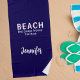 A navy blue background, white text with red hearts. Personalize and add a name. Quote: Beach. Best Escape Anyone Can Have.