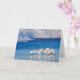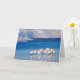 Blank greeting card featuring little white beach birds running from waves on a sunny California beach. Photo taken at Capistrano Beach, California.