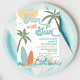 Make waves with this vibrant beach birthday party invitation, perfect for kids who love sun, surf, and fun! Featuring palm trees, surfboards, ocean waves, and a bright sun, this design sets the tone for a tropical celebration. Ideal for summer birthdays or poolside parties, its customizable with your event details and ensures guests feel the excitement from the moment they receive it. A festive choice to highlight your childs special day while boosting visibility with beach party keywords.